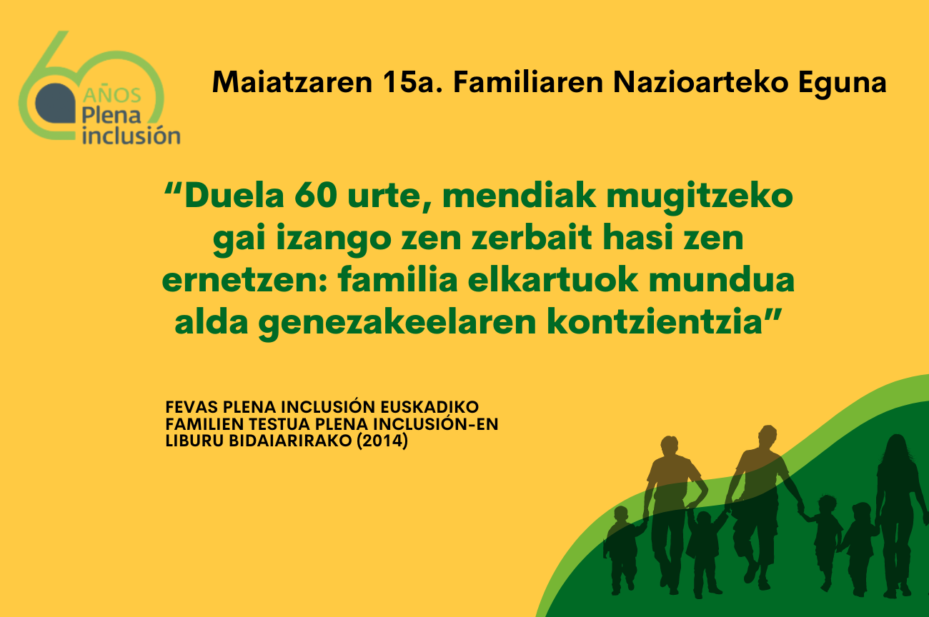 Kanpaina horrek, Plena inclusión-en 60. urteurrenarekin lotuta, familien balioa ikusarazi, aintzatetsi eta eskertu nahi du, haien bultzada eta batasuna erabakigarria izan baitira gizarteratzeko eta eskubideak lortzeko bidean.