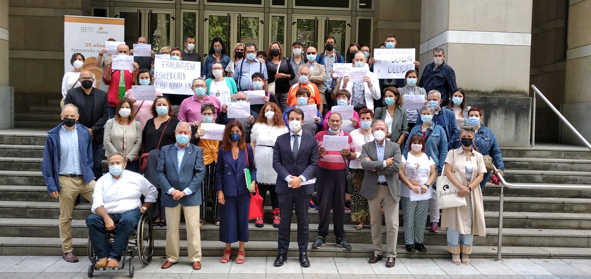 En el acto, celebrado en los exteriores del Palacio de Justicia de Bilbao, representantes de las tres entidades (Futubide, F. Usoa y F. Atzegi) leyeron un Manifiesto para celebrar este hito histórico y exigir a las Administraciones Públicas un firme compromiso con esta reforma.
