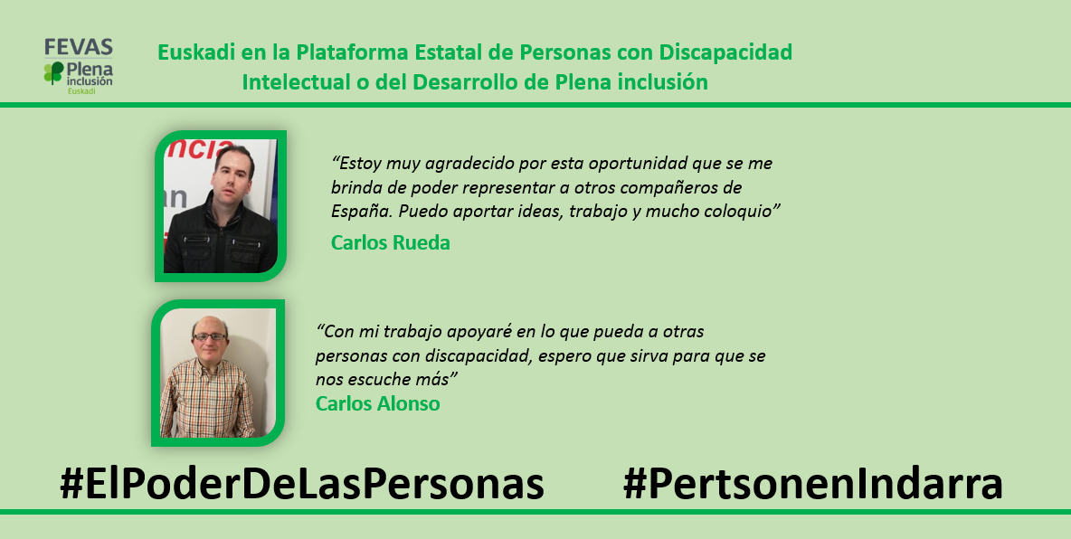 Carlos Rueda, de la asociación Apdema, y Carlos Alonso, de la asociación Gaude, forman parte de esta Plataforma que se configura como Órgano de auto representación de las personas con discapacidad intelectual o del desarrollo dentro del movimiento asociativo Plena inclusión España.