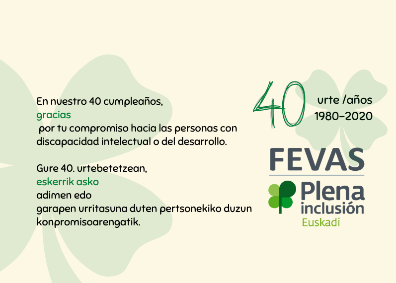 Este año cumplimos 40 años, el 18 de noviembre de 1980 se constituía FEVAS. Las entidades vascas se unían con la vista puesta en un horizonte común: lograr una vida mejor para las personas con discapacidad intelectual o del desarrollo y para sus familias.