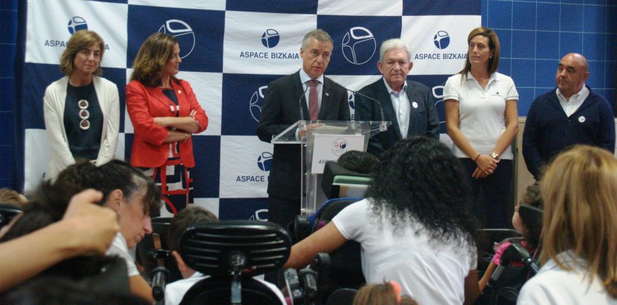 Tras reunirse con el equipo profesional del centro y conocer las aulas y los proyectos que en ellas se desarrollan, se celebró un acto al que asistió el alumnado y los y las profesionales de la entidad.