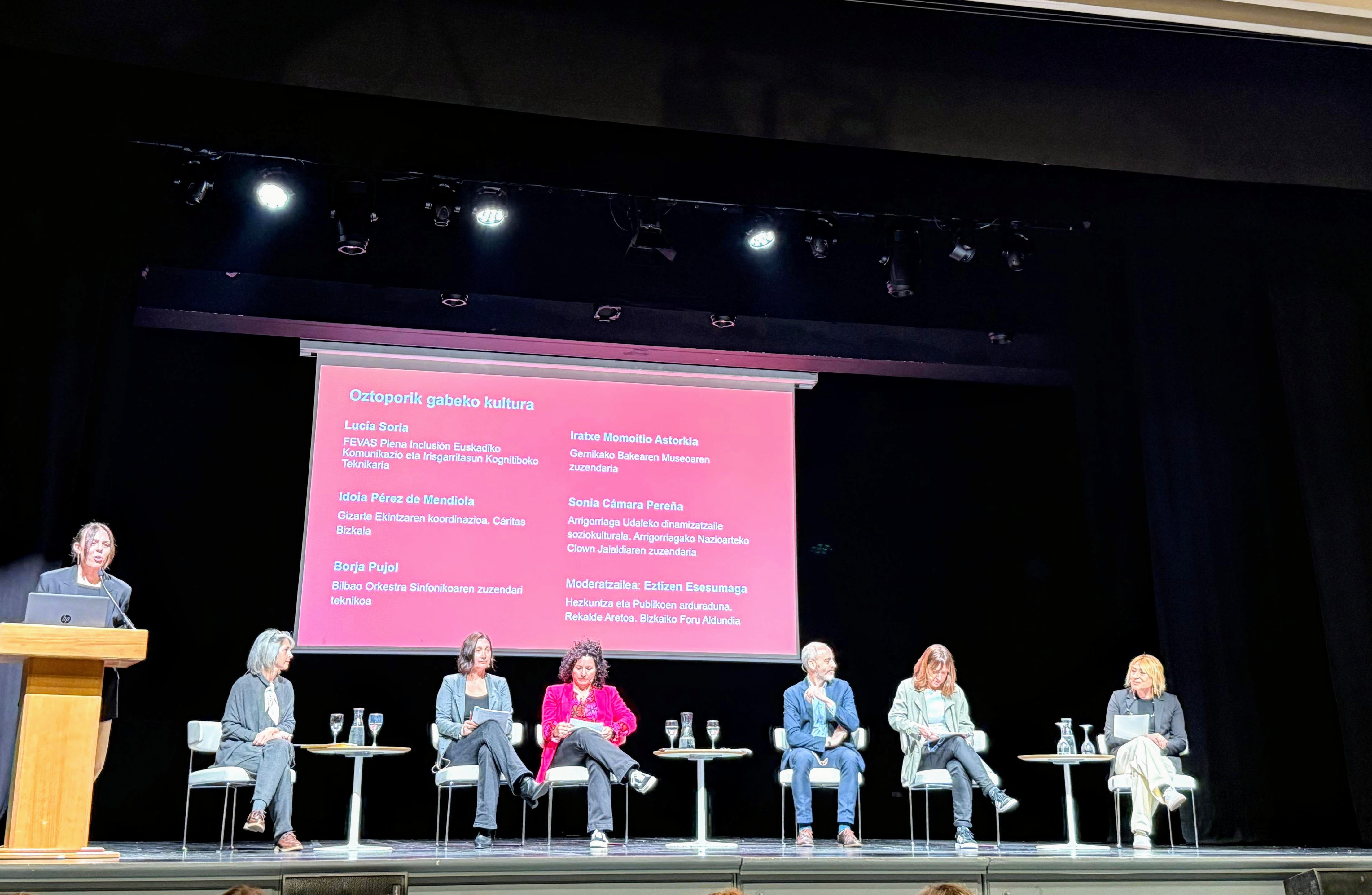 Ayer tuvo lugar en la Sala BBK de Bilbao la presentación de Gertu Kultura Bizkaia, una iniciativa que nace con el objetivo de promover una cultura más accesible, diversa y transformadora. En estos momentos esta plataforma reúne a 22 programadores culturales y 33 entidades sociales, entre ellas FEVAS, para trabajar juntas por una cultura inclusiva.