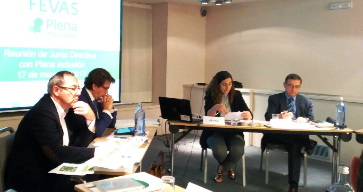 Santiago López y Enrique Galván, presidente y director respectivamente de Plena inclusión, participaron en una Jornada de trabajo con FEVAS Plena inclusión Euskadi a la que asistieron representantes de las entidades federadas.