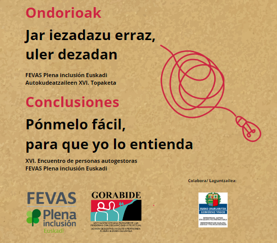 El escrito recoge las conclusiones del XVI Encuentro vasco de personas autogestoras, celebrado en Bilbao a finales del pasado año, en el que participaron cerca de 90 personas